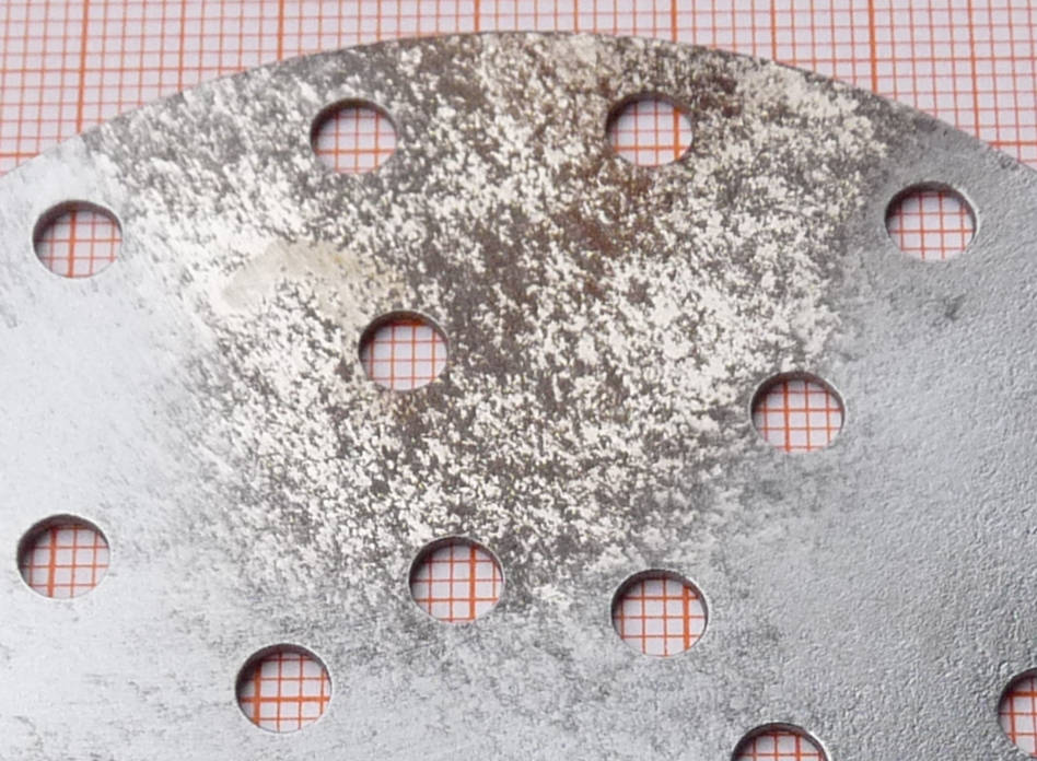 die von unten in die farbige Pappe gedrückt waren. Unter dem Schraubenkopf